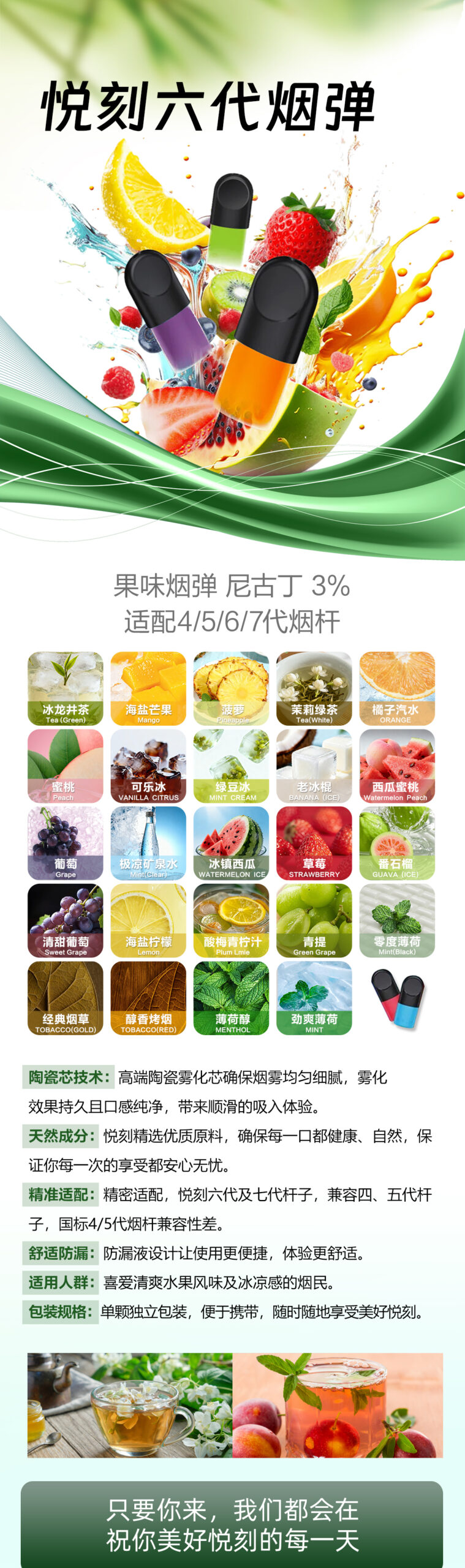 果味茶味烟弹*6 单颗装 3%尼古丁 4/5/6/7代 正品 海外原装