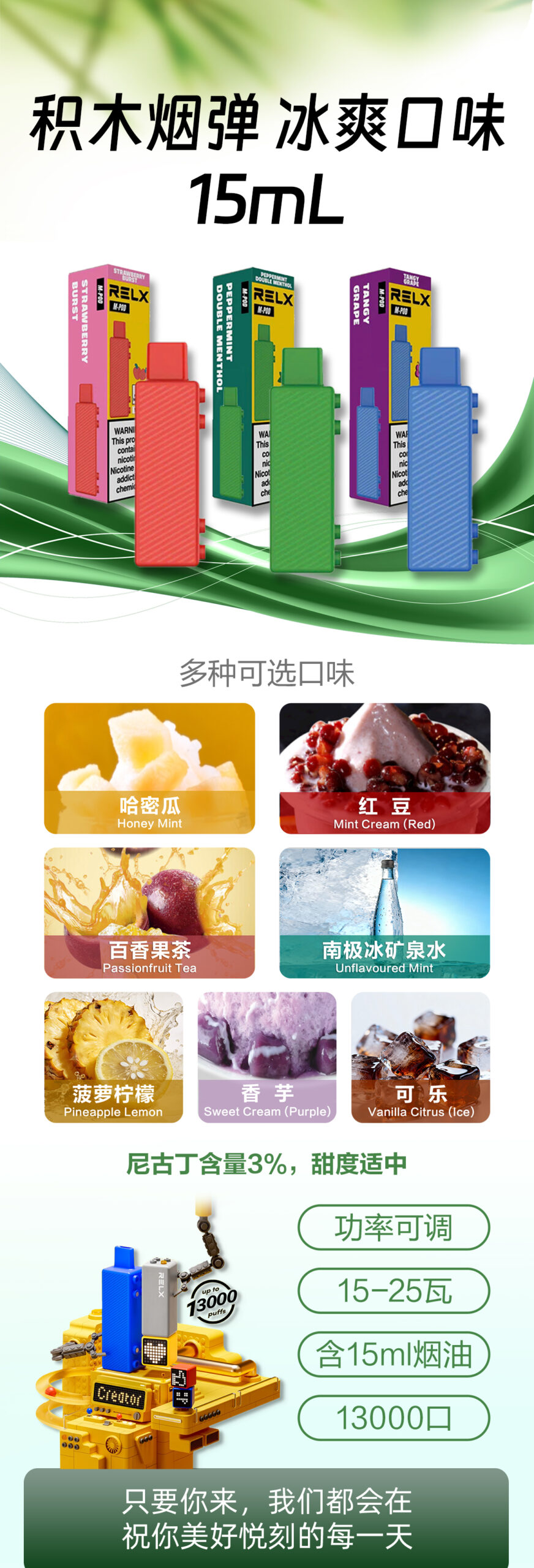 13000口 积木烟弹15ml 冰凉果味 3%尼古丁 正品 海外原装